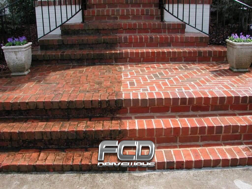 We will first power wash the entire paved area. This removes the existing build up of grime, dirt and moss on your paving. Once it has been completely and thoroughly cleaned, we will let it dry. Once dried, kiln dried sand is added back to your paving joints.